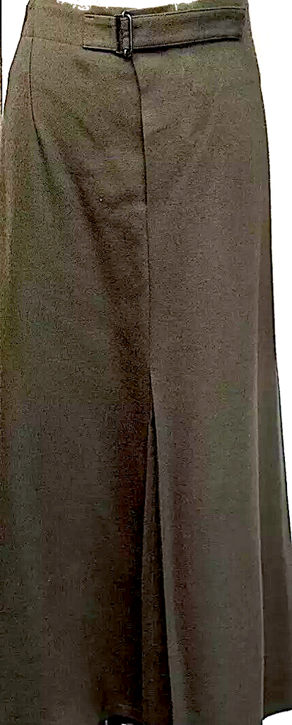 Yohji Yamamoto Japan. Olive Green Wool Skirt, Front Pleat, Belted, Maxi Length