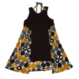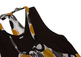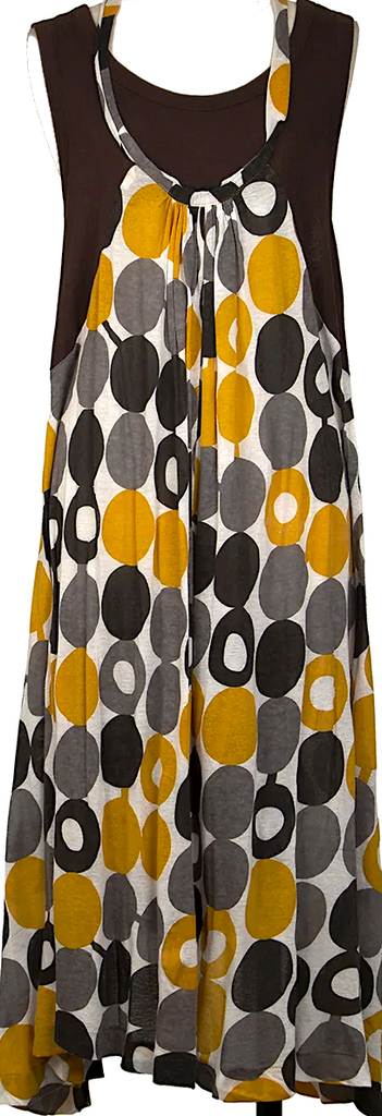 YOHJI YAMAMOTO JAPAN. Y's Cotton/Rayon Blend Circle Dot Brown Printed Switching Sleeveless Dress