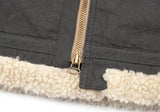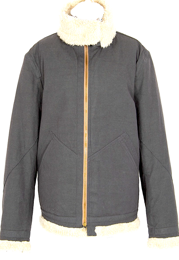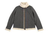 YOHJI YAMAMOTO JAPAN. Y's Faux Fur Khaki-Green, Ivory Switched Design Zip Front Blouson Jacket