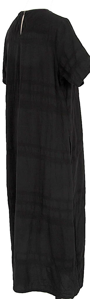 YOHJI YAMAMOTO JAPAN. Y's for living Black Cotton Stripe Woven Short Sleeve Keyhole Back Accent Dress