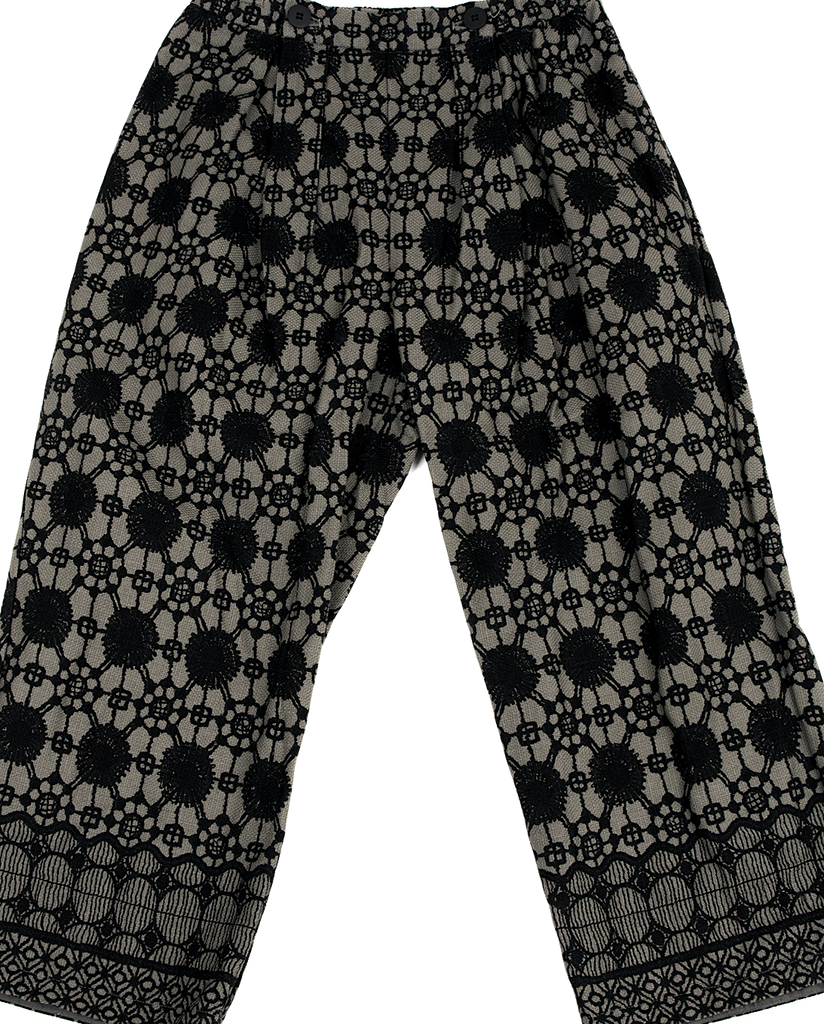 Yohji Yamamoto Japan. Y's for Living. Grey/Black Printed Lace Pattern Cotton Wide Pants