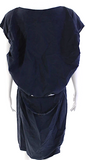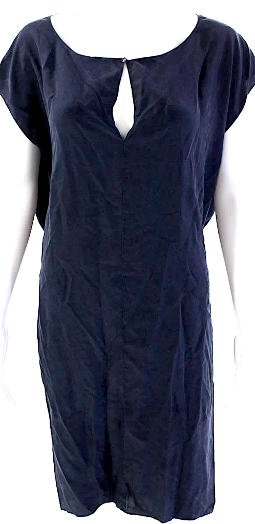 Yves Saint Laurent Paris. Dark Blue Silk Sleeveless V-Neck Pullover Mini Dress