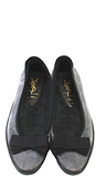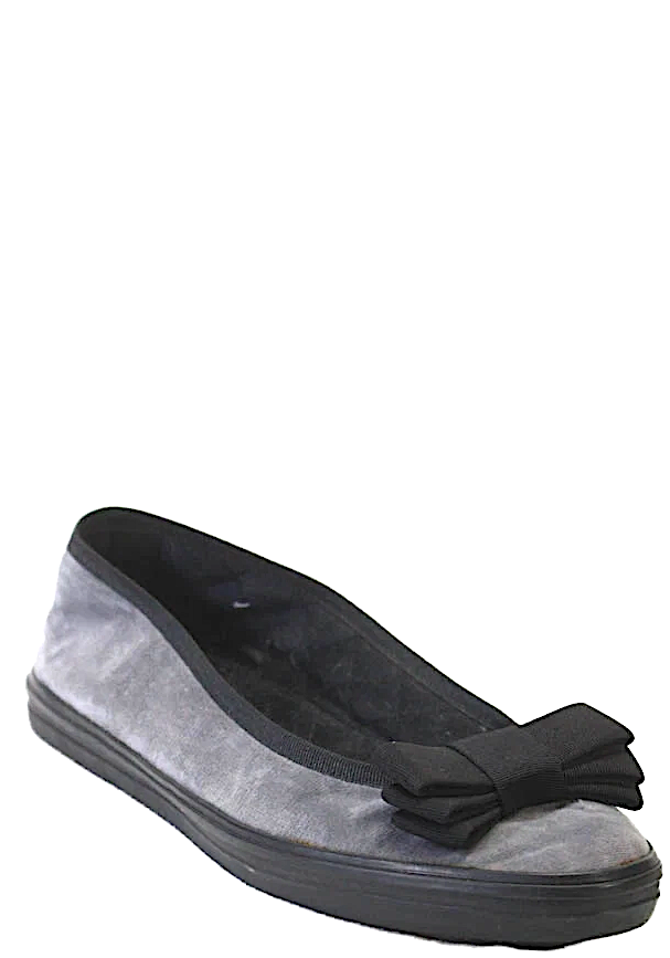 Yves Saint Laurent Paris Gray Black Velvet Bow Detail Slide On Ballet Flats Size 38.5