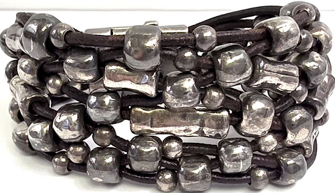 1 Para Mi. MADRID. Handmade Spain. Silver Plated, Pewter, Sterling Chunky Leather Bracelet