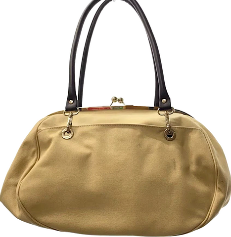 AYANOKOJI JAPAN. Large Kiss Lock Beige Canvas Shoulder Bag