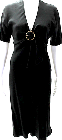 Prada Italy. Black Short Sleeve V Neck Knee Length Silk Shift Dress