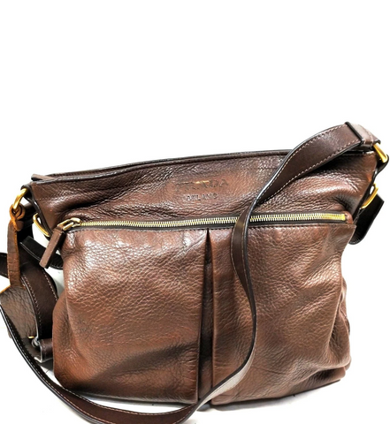 Prada Italy. Brown Pebbled Leather Shoulder Bag / Crossbody bag