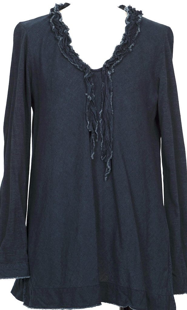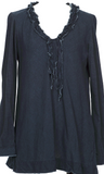 45RPM JAPAN. Indigo Dyed Ribbon Neck Shirt/Blouse