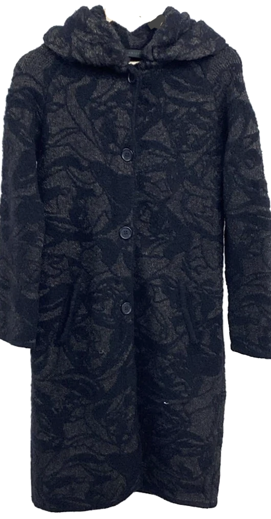 ANTEPRIMA ITALY. Black Abstract Knit Coat w/Hood