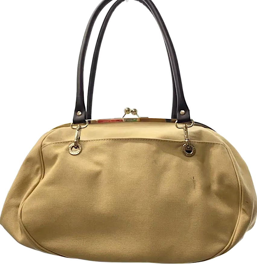 AYANOKOJI JAPAN. Large Kiss Lock Beige Canvas Shoulder Bag
