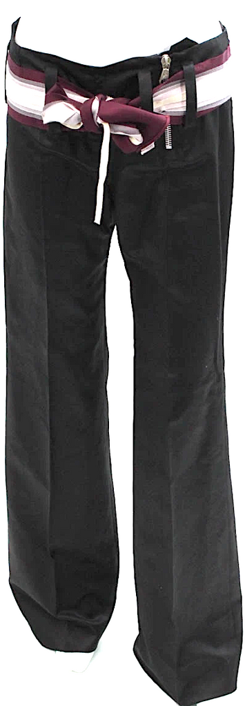 Chloe Paris. Black High Rise Grosgrain Belt Pleated Dress Pants