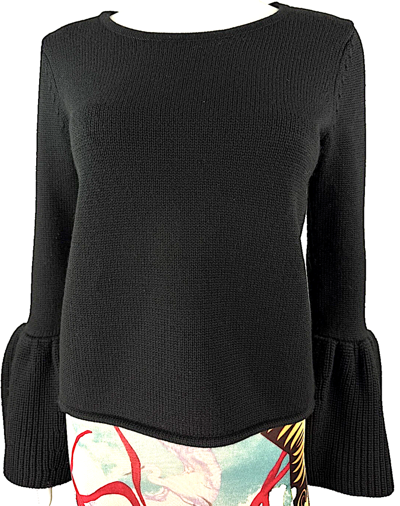 Co Japan. Japanese Yarn Black Wool Sweater with Flare Cuffs