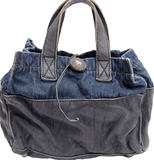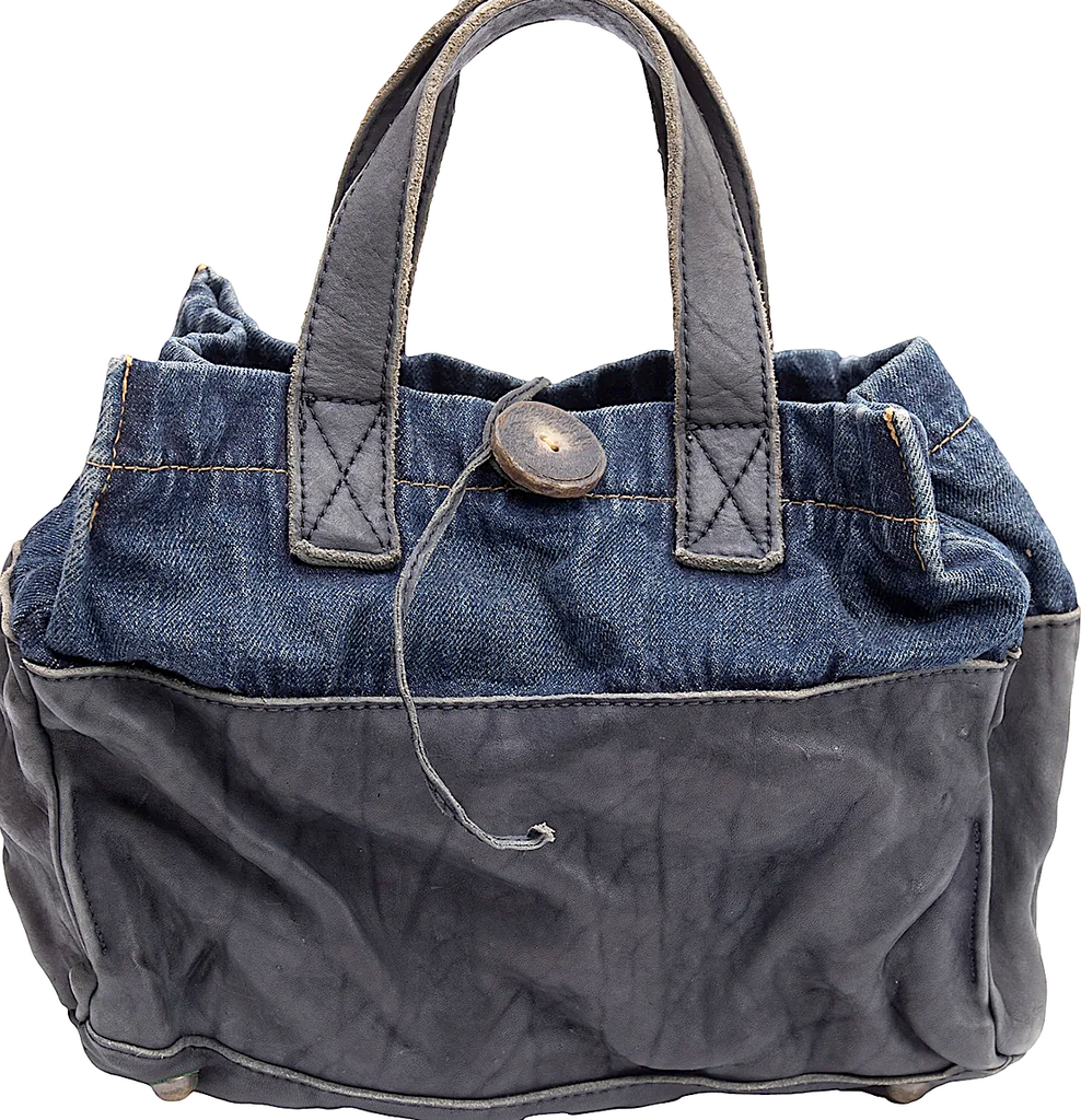 COMME des GARCONS JAPAN. TRICOT. Black Leather Indigo Switching Denim Washed Bag