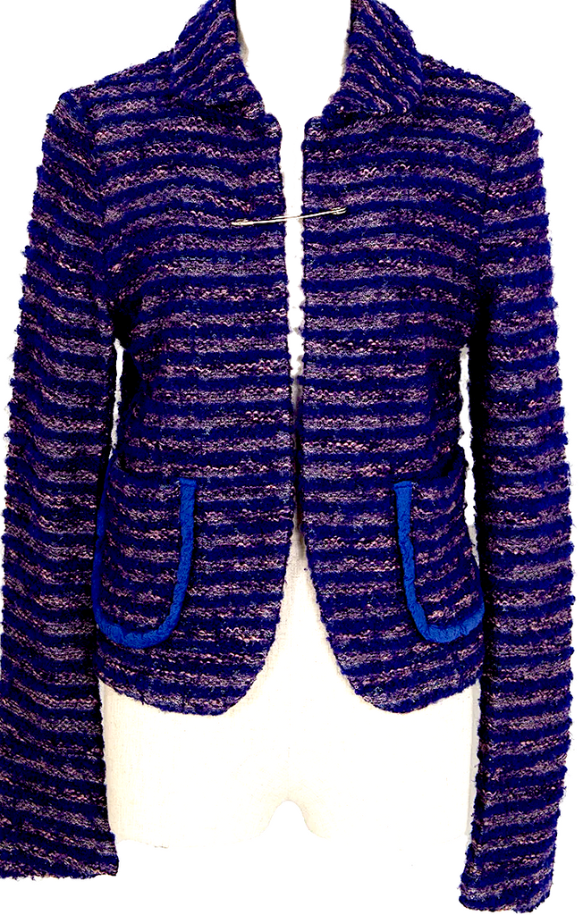 COMME des GARCONS JAPAN. TRICOT. Blue, Purple Dyed Stripe Loop Knit Jacket