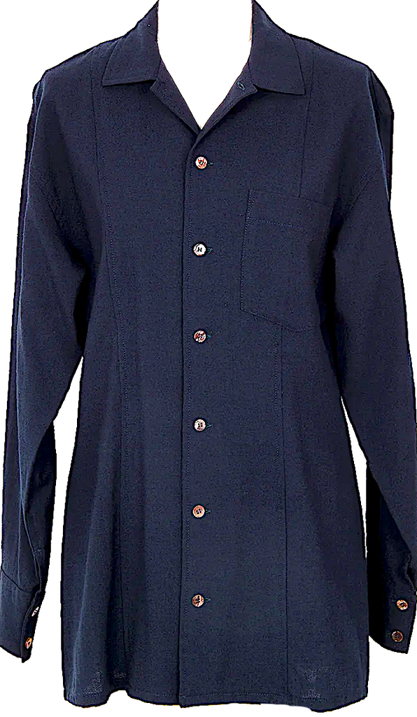 COMME des GARCONS JAPAN. TRICOT. Navy Wool Back Pleated Switching Shirt