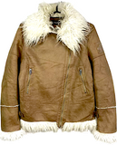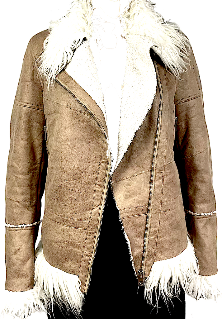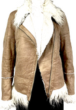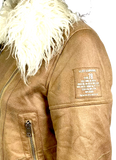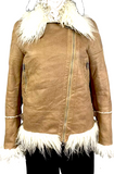 Diesel. Honey Brown Color Leather Faux Fur Boho Chic 70's Inspired Jacket