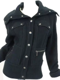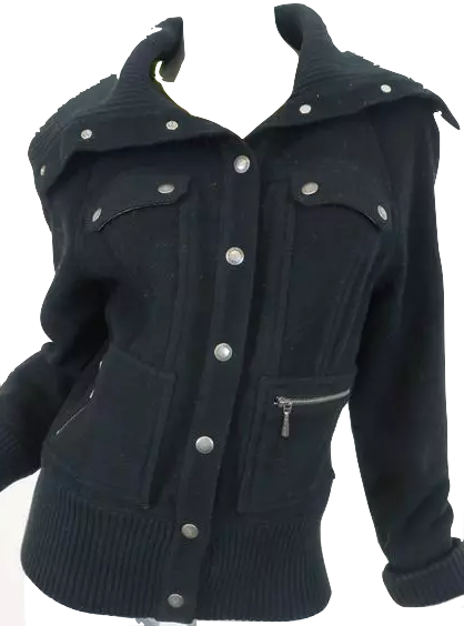 Donna Karan. DKNY.Jeans, Black Knit-Trim Wool Bomber Jacket