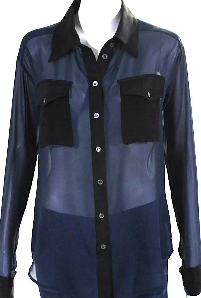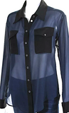Elizabeth & James. (The Row) Navy, Black Semi-Sheer Button Front Collared Shirt