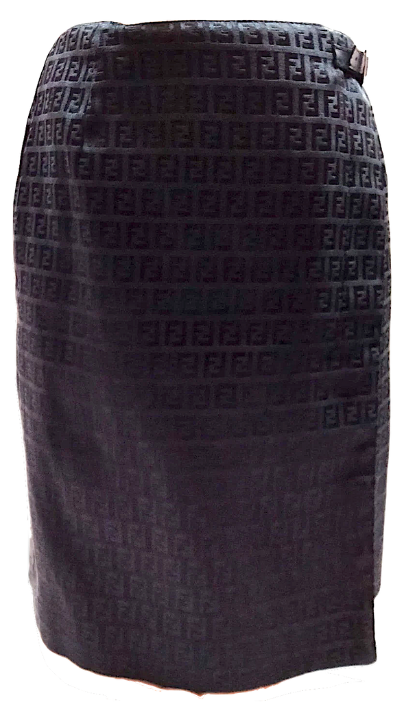 Fendi Italy. Black FF Logo Cotton, Rayon Skirt