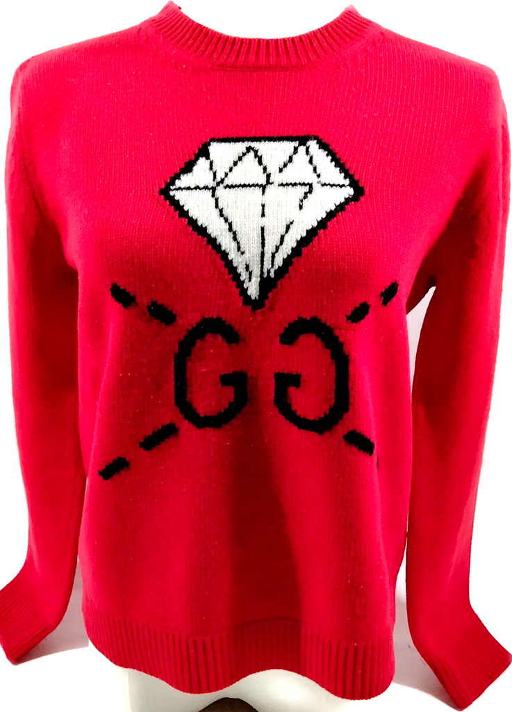 Gucci Italy. Red Illustration LOGO Wool Sweater Top