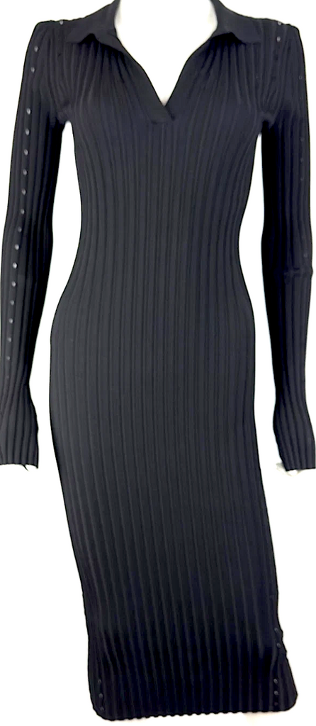 Helmut Lang New 2 4 US 40 IT XS S Black Stretch Bodycon Midi Dress