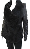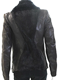 Helmut Lang NYC. Black Lapin Rabbit Fur Long Sleeve Leather Jacket