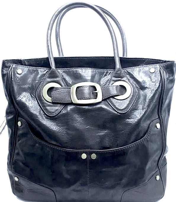 HIROKO KOSHINO Japan. Black Leather, Silver Hardware Shoulder bag