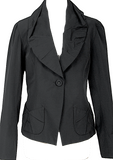 HIROKO KOSHINO JAPAN. HIROKO BIS. Black Poly Cotton Drape Collar Jacket