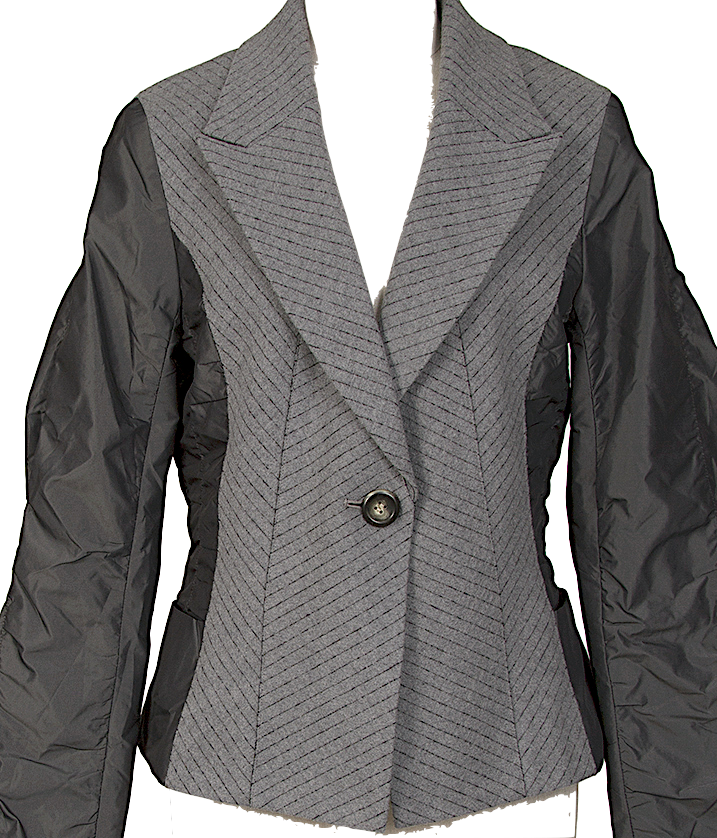 HIROKO KOSHINO JAPAN. HIROKO BIS Grey Switching Herringbone Wool Cotton Jacket