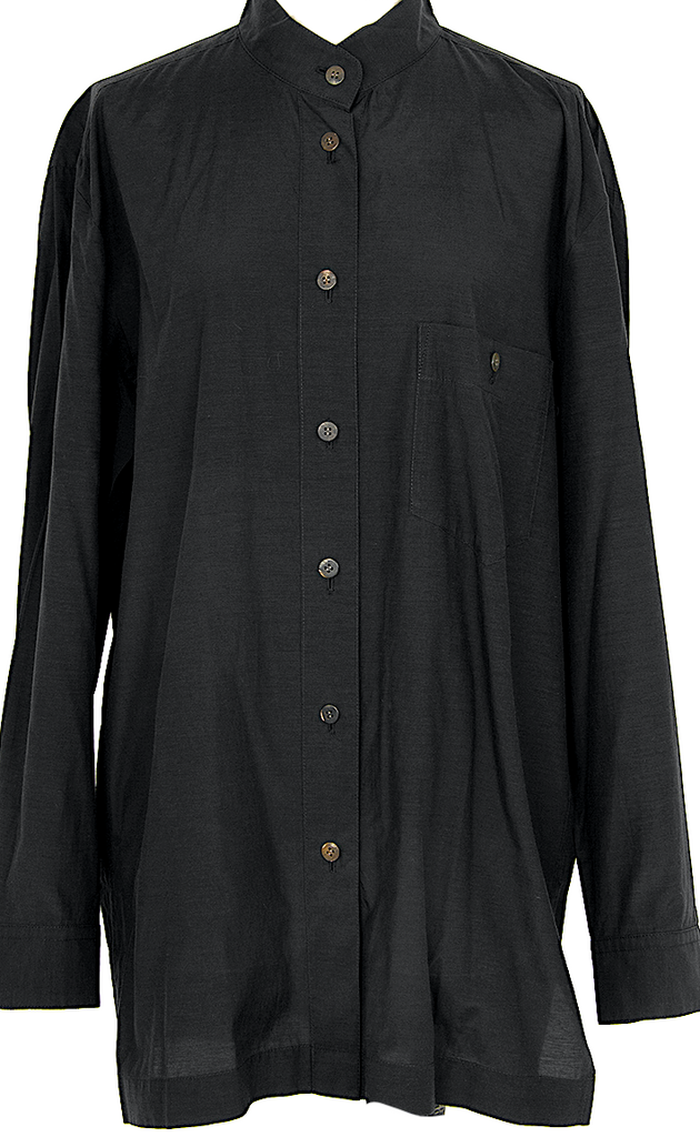 ISSEY MIYAKE JAPAN. Black Cupra Cotton Mao Collar Shirt