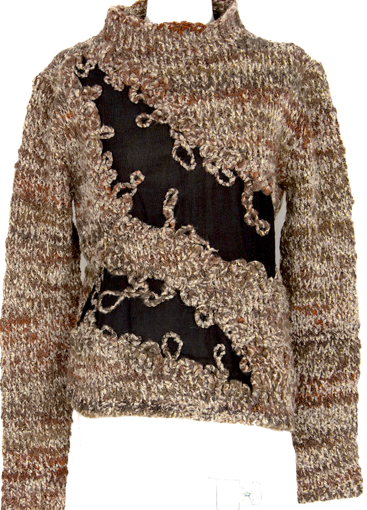 M.& KYOKO JAPAN. NEW W/TAGS. Brown, Black Abstract Knit Switching High Neck Knit Sweater