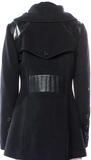 Mackage Quebec. Black Wool Leather Trim/Belt Peacoat