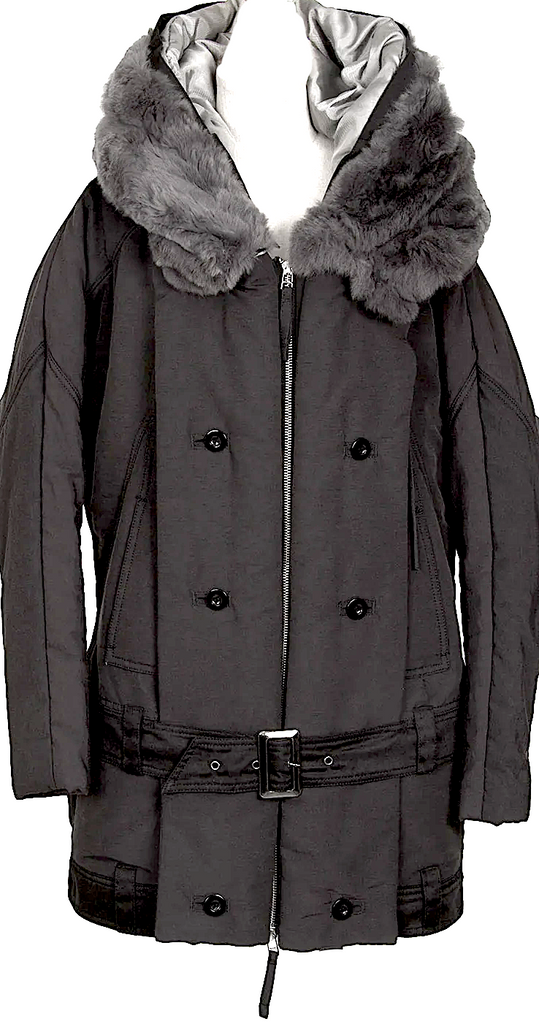 MARITHE + FRANCOIS GIRBAUD PARIS. Grey Rabbit Fur Hoodie Jacket. MANY MORE FURS AND FAUX FUR IN STORE NOW