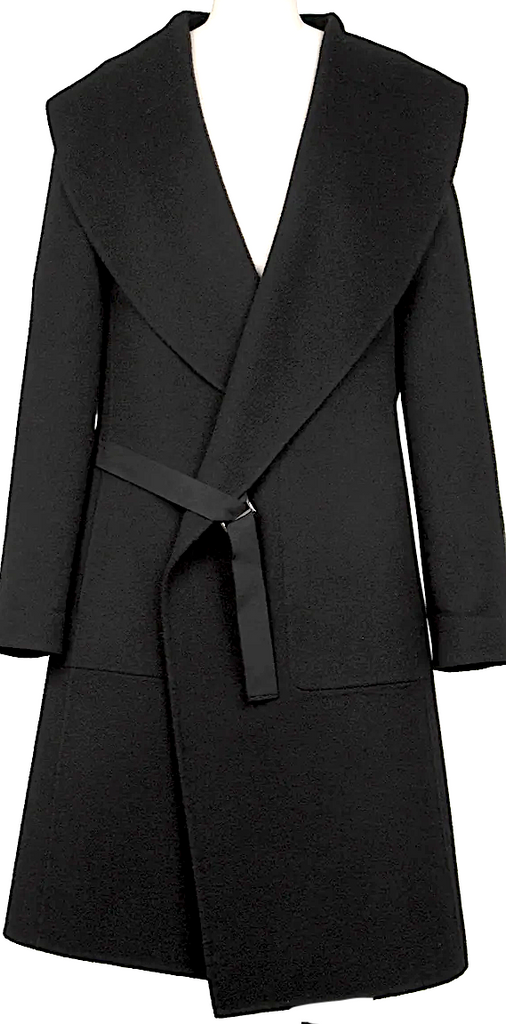 MaxMara BASILE 28 ITALY. Black Cashmere Blended Belt Design Coat