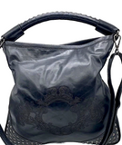 Otaniryuji Japan. Black Lambskin Leather Shoulder Bag w/silver Studded Accents