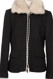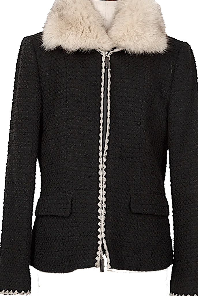 PINK HOUSE INGEBORG JAPAN. Black Wool Fox Fur Tweed Jacket