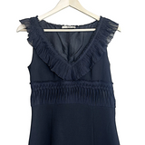Prada Italy. Black Ruffle Trim Sleeveless Midi Dress