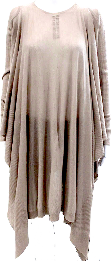 Rick Owens Paris. Beige Long Sleeve Oversized Draped Cashmere Sweater