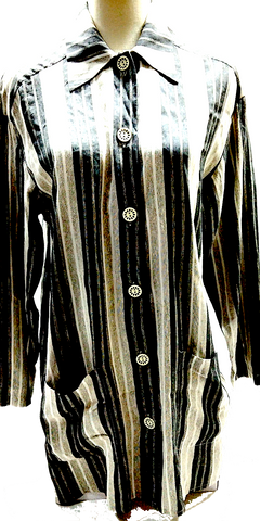 Fendi ITALY. Black/Grey/Beige Striped Silk/Rayon Tunic Style Shirt