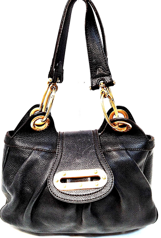 DolceGabbana Italy. Black Leather Goldplated Hardware Shoulder Bag