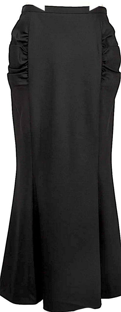 HOMMA JAPAN. Black Side Gather Wool Flare Skirt