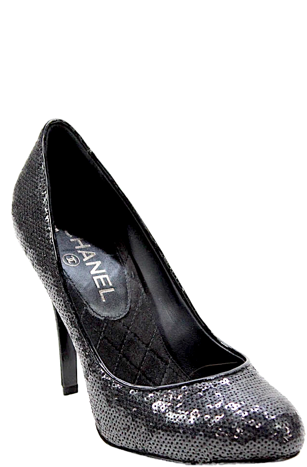 Chanel PARIS. Black/Silver Sequins Embellished Platform Heels Pumps Size 38FR