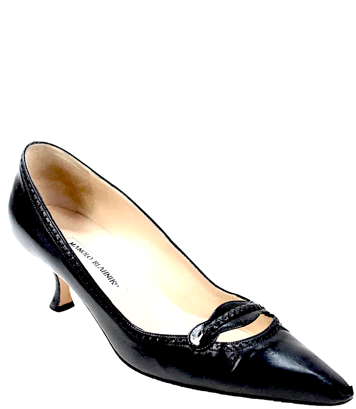 Manolo Blahnik Paris. Black Leather Pointed Toe Kitten Heel Pumps Size 40