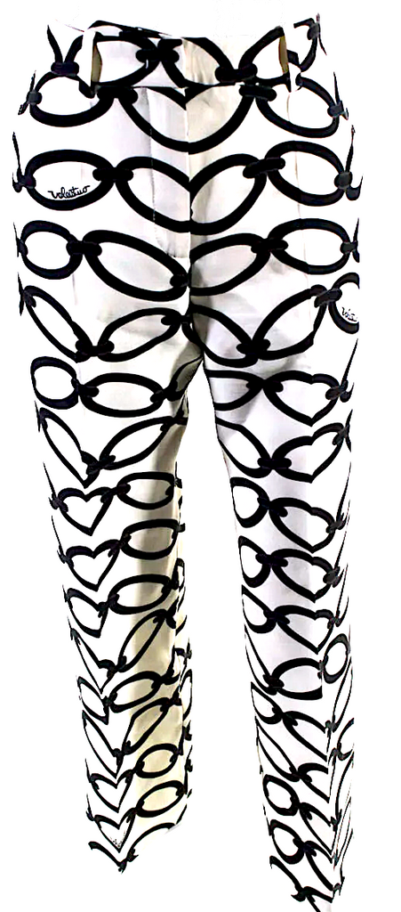 Valentino Garavani Italy White, Black Chain Logo Print Mid Rise Pleated Pants