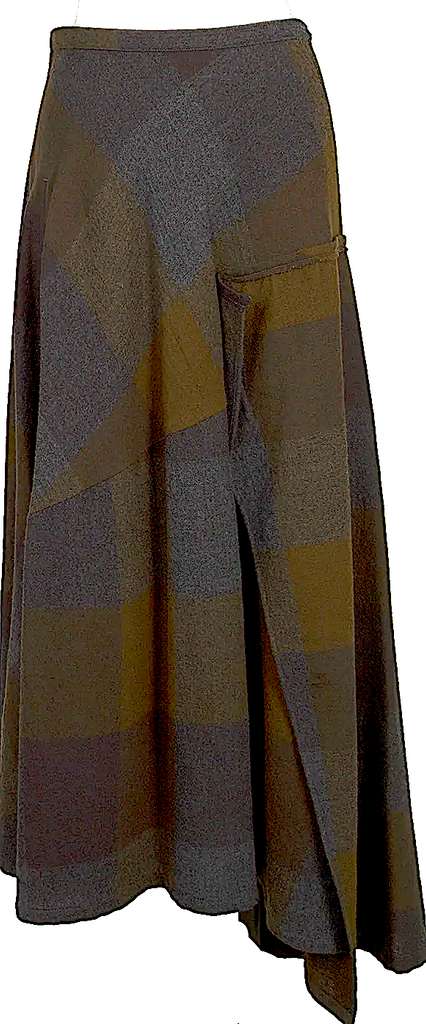 Yohji Yamamoto Japan. NOIR Charcoal, Khaki Block Plaid Check Switching Design Skirt