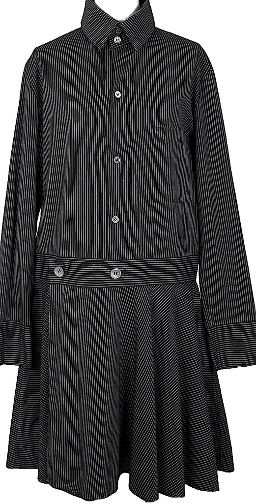 YOHJI YAMAMOTO JAPAN. Y's Black Striped Wrap Design Flare Shirt Dress