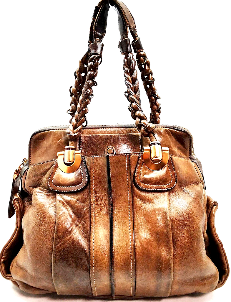 • Chloe Paris. Phoebe Philo. Vintage Brown Distressed Leather Shoulder Bag / Hand Bag