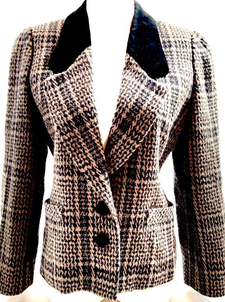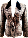 • Chloe Paris. Vintage Miss Chloe. Tweed Style Accent Collar Wool, Nylon, Polynosic, Cupro Blazer