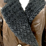 • Givenchy Paris. Vintage Brown Rayon.Nylon Coat w/Black Faux Fur Accents