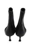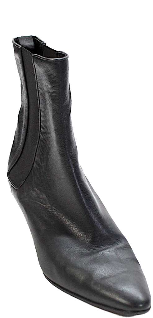 Manolo Blahnik France. Black Leather Pointed Toe Heeled Ankle Boots